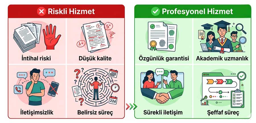 - Ek Hizmetler: Sunulan intihal raporu, kılavuz desteği ve iletişim kalitesi profesyonelliğin göstergesidir.